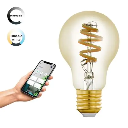 Die Eglo Connect.Z Smart LED Birne E27 Fadenlampe Messing 4.9W 360lm - 827-865 Abstimmbares Weiß | Dimmbar - Ersatz Für 25W ist eine effiziente E27 LED-Lampe mit Retrodesign und der perfekte Ersatz für Ihre konventionellen 25W Lampen mit E27. Zudem strahlt sie Licht in der Farbtemperatur 2700K - 6500K Tunable White aus und punktet durch eine lange Lebensdauer.