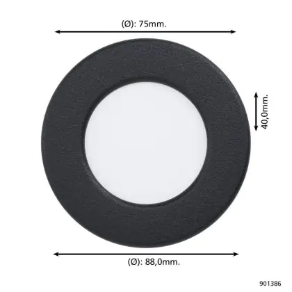 Der Eglo Einbau Spot Fueva 6 Plastik Schwarz 3.7W 450lm - 827-840-865 CCT ist ein LED-Einbaustrahler, welcher Licht in der Farbtemperatur 2700K - 4000K - 6500K CCT ausstrahlt und durch eine lange Lebensdauer punktet. Die Einbauleuchte ersetzt konventionelle Halogenstrahler.
