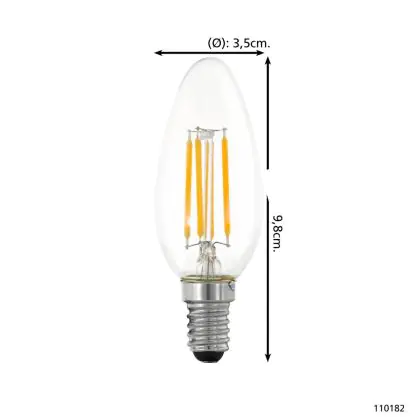 Die Eglo LED Kerze E14 Fadenlampe Klar 4.5W 470lm - 827 Extra Warmweiß | Dimmbar - Ersatz Für 40W ist eine effiziente E14 LED-Lampe mit Retrodesign und der perfekte Ersatz für Ihre konventionellen 40W Lampen mit E14. Zudem strahlt sie Licht in der Farbtemperatur 2700K - Extra Warmweiß aus und punktet durch eine lange Lebensdauer.