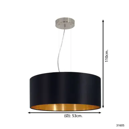 Beschreibung Eglo Pendelleuchte Maserlo Stahl Satin-Nickel | Geeignet für 3x E27
