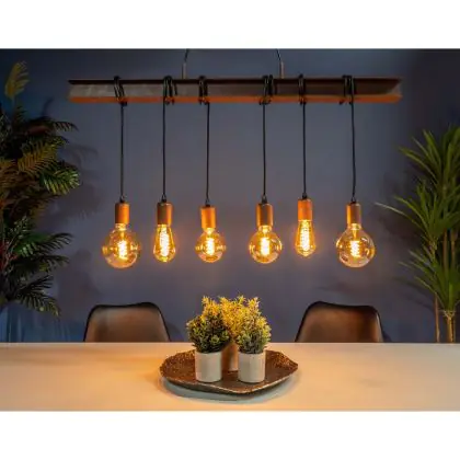 Die Eglo Pendelleuchte Townshend 4 Stahl Braun Schwarz | IP20 - Geeignet für 6x E27 sorgt für eine angenehme Ausleuchtung und punktet durch modernes Design. Diese Leuchte ist speziell zur Montage an der Decke vorgesehen.