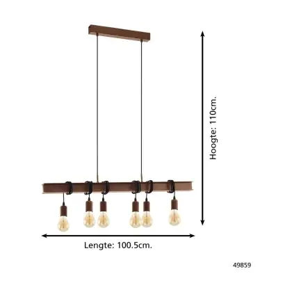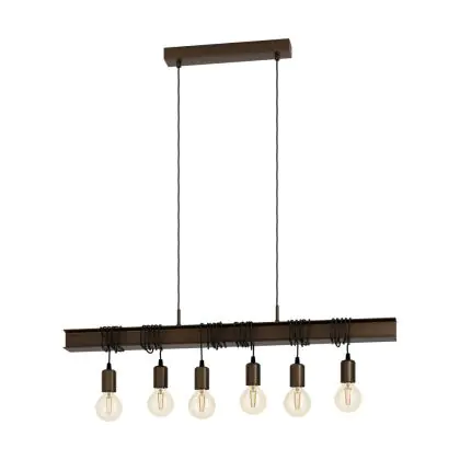Beschreibung Eglo Pendelleuchte Townshend 4 Stahl Braun Schwarz | IP20 - Geeignet für 6x E27