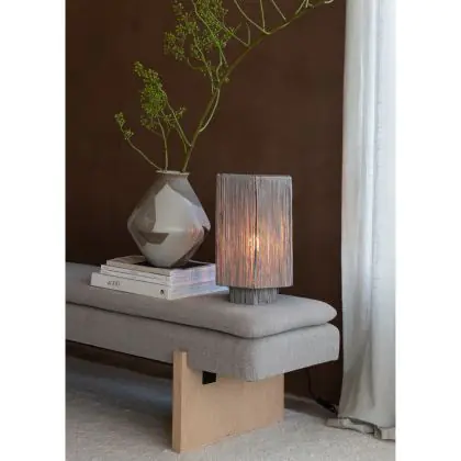 Good&Mojo Tischlampe Panama Raffia Grau L | Geeignet für 1x E27