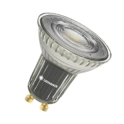 Die Ledvance LED Reflektor GU10 PAR16 6.1W 575lm 36d - 930 Warmweiß Warmweiß| Dimmbar - Ersatz Für 80W ist eine effiziente GU10 LED-Lampe und der perfekte Ersatz für Ihre konventionelle Halogenlampe mit 80W und einem GU10-Sockel, bei welchem die zwei Stifte einen Abstand von 10 mm zueinander haben. Zudem strahlt das Produkt Licht in der Farbtemperatur aus und punktet durch eine lange Lebensdauer.