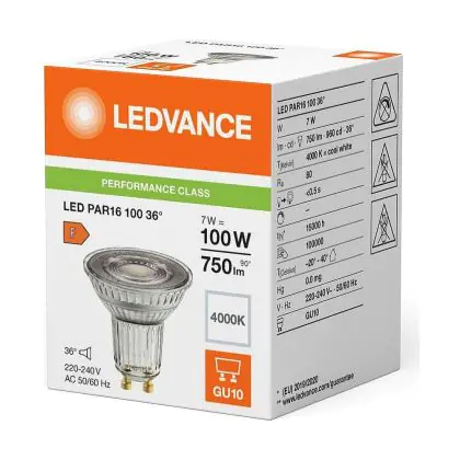 Beschreibung Mehrfachpackung 10x Ledvance LED PAR16 GU10 Reflektor 7W 750lm 36D - 840 Kaltweiß | Ersatz Für 80W