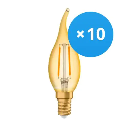 Beschreibung Mehrfachpackung 10x Ledvance Vintage 1906 LED E14 Kerze Gold 1.5W 120lm - 824 Extra Warmweiß | Ersatz für 15W