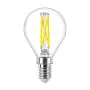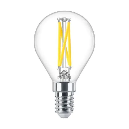 Die Mehrfachpackung 10x Philips MASTER LED E14 Kugel Fadenlampe Klar 2.5W 340lm - 922-927 Dim To Warm | Höchste Farbwiedergabe - Dimmbar - Ersatz Für 25W ist eine effiziente E14 LED-Lampe mit Retrodesign und der perfekte Ersatz für Ihre konventionellen 25W Lampen mit E14. Zudem strahlt sie Licht in der Farbtemperatur aus und punktet durch eine lange Lebensdauer.