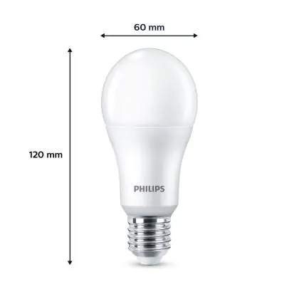 Die Mehrfachpackung 6x Philips Glühbirne LED E27 Birne Matt 13W 1521lm - 827 Extra Warmweiß ist eine effiziente E27 LED-Lampe und der perfekte Ersatz für Ihre konventionellen W Lampen mit E27-Sockel. Zudem strahlt sie Licht in der Farbtemperatur 2700K - Extra Warmweiß aus und punktet durch eine lange Lebensdauer.