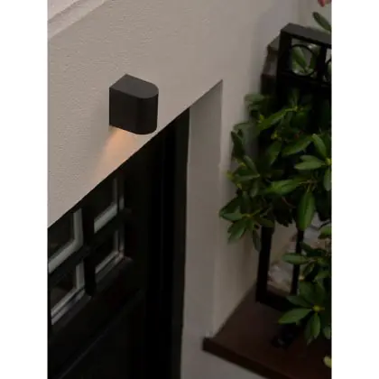 Die Nordlux Dion Single besticht durch ihr klares, minimalistisches Design in mattem Schwarz. Sie verbindet Stil mit Funktion und setzt stilvolle Lichtakzente an Hausfassaden, Eingangsbereichen oder Wegen.