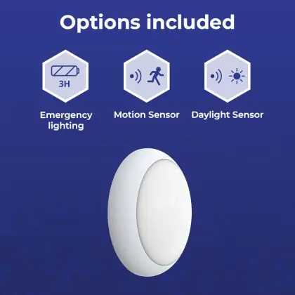 Die Noxion LED-Wand- und Deckenleuchte Pro V2 12/16/20W 2400lm - 830-840-865 CCT| 325mm - IP65 - Bewegungs- und Lichtsensor - 3 Stunden Notlicht + Ring Weiß ist eine Feuchtraumleuchte. Sie strahlt Licht in der Farbtemperatur aus und punktet durch eine lange Lebensdauer. Diese Leuchte ist speziell zur Verwendung in Feuchträumen (Keller, Waschräume, etc.) vorgesehen.