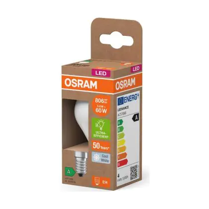 Die Osram LED Classic LED E14 Birne Fadenlampe Matt 3.8W 806lm - 840 Kaltweiß | Ersatz Für 60W ist eine effiziente E14 LED-Lampe mit Retrodesign und der perfekte Ersatz für Ihre konventionellen 60W Lampen mit E14. Zudem strahlt sie Licht in der Farbtemperatur 4000K - Kaltweiß aus und punktet durch eine lange Lebensdauer.