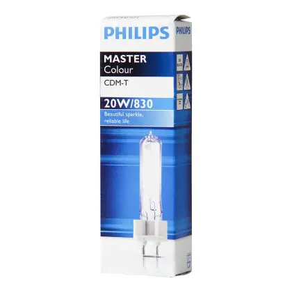 Die Philips MASTERColour ist eine CDM-T-Entladungslampe. Sie ist effizient, spendet sehr viel Helligkeit und garantiert Ihnen eine hohe Farbwiedergabe. Darüber hinaus profitieren Sie von dieser Lampe für bis zu 2,5 Jahre und müssen keine Wiederbeschaffungskosten in Ihre Rechnung mit einplanen.